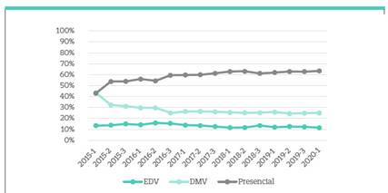 Esta flexibilidad conlleva a que la mayor parte de los estudiantes realizan una combinación de modalidades a lo largo de su carrera, aunque hasta el momento ha predominado la presencial (ver Figura 1).