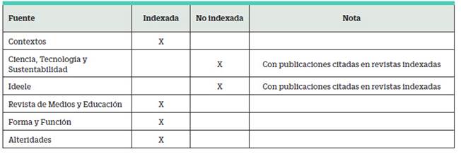 De los artículos de investigación científica, se reconocen fuentes que pueden ser clasificadas entre indexadas y no indexadas (ver Tabla 2); asimismo, muchos de ellos, por longitud y para fines de condensación de información que se corresponda con el tiempo dedicado a cada texto en el examen de admisión han sido adaptados.