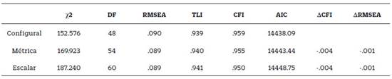 En otro resultado de la investigación también se constató la invarianza factorial del UWES-9S según sexo y nivel académico de los estudiantes, al demostrar que su estructura dimensional de tres factores es invariante en esos grupos. Estos resultados son cercanos a los encontrados por Domínguez-Lara et al. (2021), quienes evidenciaron la invarianza factorial de un modelo bifactor de este instrumento según sexo.