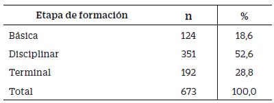 Durante el período 2021-2, la población fue de 4,551 estudiantes, según datos oficiales de la universidad1. Utilizando el algoritmo propuesto por Cuesta y Herrero (2010, citado en: Organista-Sandoval y Serrano-Santoyo, 2014), con un nivel de confianza del 95% (Z=1.96), una frecuencia/probabilidad del factor a estudiar del 50% (P=0.5) y una estimación del error máximo del 0.05, se calculó que el tamaño mínimo de la muestra para que fuera representativa era de 354 estudiantes. En el caso de este estudio, la muestra alcanzó los 673 participantes (14.8% de la población estudiantil), de los cuales la mayoría se encontraba cursando la etapa disciplinar (semestre tercero al sexto: 52.6%) de su programa de estudios (Tabla 1). Por su parte, menos de un quinto (18,6%) de los participantes se encontraban en la etapa básica (semestres 1 y 2) de sus licenciaturas.
