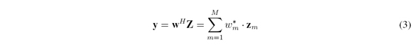 The array outputy=[y(1) … y(N)] is given by a linear combination of the induced voltages on the sensors, weighted by a vectorw=[w1… wM]Tof a spatial filter coefficients: