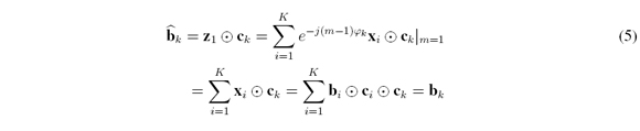 whereck∈;{-1,1} is a spreading sequence containing a pseudo-noise code, and ⦿ stands for elementwise product. Considering we know the spreading sequenceckat the receiver and that it is synchronized with the target signal, we can recoverbkby making: