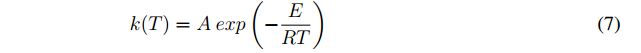 La constante de reacción es función de la temperatura y del factor de frecuencia o factor pre exponencial A. Sustituyendo la ecuación 7 en la ecuación 6 y tomando logaritmos se obtiene: