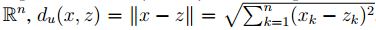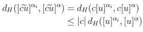 En el espacio (E n , d ) solo intervienen subconjuntos difusos decon restricciones particulares ya expuestas, para estas tres distancias, no hay restricción alguna, así que se obtiene una bifurcación de los subconjuntos difusos, y por consiguiente no estan muy relacionadas. Además la información obtenida de las tres distancias es muy débil, mostrando una cualidad muy general, que es grado de similaridad de dos subconjuntos dados. Mientras que en el espacio (E n , d ) , se comparan los α-cortes con la métrica de Hausdorff, es decir, se le está dando analisis a cada