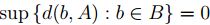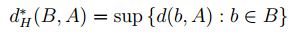 Definición 2.2 Sean A y B dos subconjuntos acotados y no vacíos de, la separación de Hassdorff de B a A es: