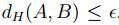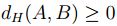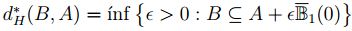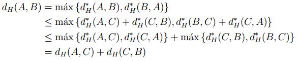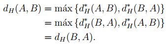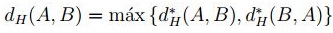 Definición 2.3 Sean A y B dos subconjuntos no vacíos y acotados de, la distancia de Hausdorff entre A y B es