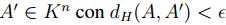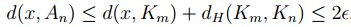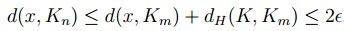 De modo que la distancia de Hausdorff mide cuan lejos están uno de otro dos subconjuntos compactos de. Además, (Kn , dH) cuenta con las propiedades de la completitud y