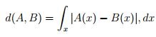 Sean A, B subconjuntos difusos del universo X cualquiera, la distancia de Hamming se define como