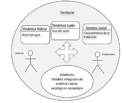 El enfoque se plantea integrado en la medida que la región de la Mojana es abordada como un territorio, un sistema complejo 17, donde están involucrados: objetos, naturaleza, artefactos técnicos, actores humanos, entidades sociales, normas y leyes. Son presentados fundamentos de la modelación integrada según Letcheret al., (2013) 25 con las ideas que han surgido en la investigación: