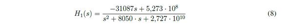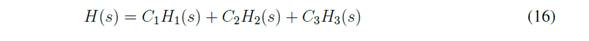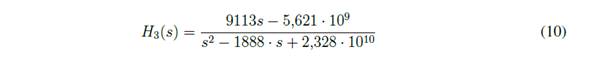 Al aplicar la estrategia de realización descrita en párrafos anteriores, se obtuvieron tres subsistemas , H1(s), H2(s) y H3(s), todos ellos de segundo orden, los cuales se presentan en las ecuaciones (8), (9) y (10) respectivamente.