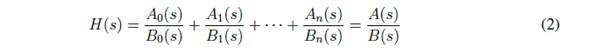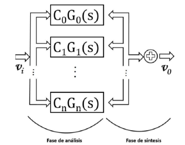 Cada Gi(s) posee infinitas realizaciones, lo cual ofrece gran versatilidad a la hora del diseño y permitiendo así que la reconstrucción de H(s) se pueda realizar mediante bancos de filtros. En general, H(s) representa al sistema en el espacio s y está dada por la sumatoria [5], donde cada Gi(s) se considera como un subsistema, y a H(s) como una superposición de las respuestas en frecuencia de estos subsistemas individuales. Una consideración particular es el caso de los sistemas lineales e invariantes en el tiempo, pues dado que todos los coeficientes de los polinomios encontrados en H(s) son reales, y que dicho sistema es propio, entonces es claro que cada Gi(s), al descomponer H(s) hasta donde sea posible, debe ser un subsistema de primero o segundo orden con polos complejos conjugados.