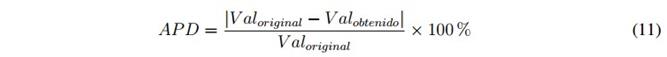 Para comparar los resultados obtenidos se utiliza el cálculo del porcentaje de diferencia absoluto o APD (Absolute Percentage Difference) como lo indica la ecuación 11.