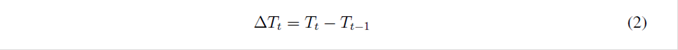 Se realiza la transformación a cada una de las 219 series de temporales para cada sitio de estudio; siendo estas series de tiempo no estacionarias. Se reduce la varianza calculando el logaritmo natural a cada dato de la serie de tiempo. Cuando la serie de tiempo es no estacionaria en varianza, es posible transformarla en una serie de tiempo estacionaria en media utilizando la ecuación 2. En este proceso la longitud de valores de la serie de tiempo se reduce en uno. Cuando se realiza el proceso inverso, la longitud de la serie de tiempo vuelve a tener el valor original [33 ], [34 ].