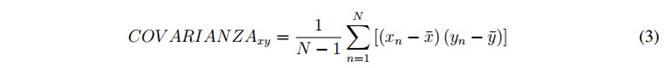 Con las series de temporales UV-Vis estacionarias en media y varianza, el siguiente paso consta en realizar la correspondiente transformación de tipo lineal, hallando un nuevo sistema de ejes coordenados utilizando de los valores originales. En el nuevo sistema de ejes coordenados, la mayor variabilidad de la información es retenida por el primer eje, que es conocido como primer componente principal; la siguiente mayor variabilidad es retenida por el segundo eje, la tercer siguiente variabilidad es retenida por el tercer eje y se continua con todas las demás variabilidades de los valores originales. Esta transformación de tipo lineal se base en la matriz de covarianza. Por consiguiente, se transforma conjunto de datos X que tiene dimensiones n x m, donde n es el número de observaciones y m el número de variables, a otro conjunto de datos de menor dimensión n x l, donde n sigue siendo el número de observaciones y l es el número de componentes principales. Este nuevo conjunto de datos es menor que m y presenta la mínima pérdida en la cantidad de informaciónútil. El proceso comienza encontrando la matriz de covarianzas que relaciona todas las variables de los valores originales como lo indica la ecuación 3.