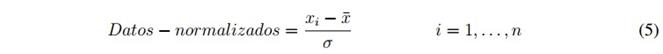 El proceso continúa obteniendo los datos normalizados, se utiliza la ecuación 5.