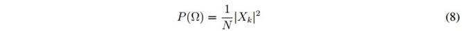 La estimación espectral se realiza por medio del método clásico o no paramétrico, asumiendo que la señal es estacionaria en el sentido amplio (Wide-Sense Stationarity WSS). Una señal es estacionaria en sentido amplio, si esta tiene media constante y su función de autocorrelación solo depende del lapso de tiempo transcurrido entre dos periodos [42 ].Cuando se tiene una señal discreta (con tiempo determinado), para estudiar e inferir las propiedades del proceso que la genera, un estimado de la densidad espectral es el periodograma, siendo este estimado la magnitud al cuadrado de la transformada discreta de Fourier (DFT) [42 ], [44 ] de la secuencia de datos como se indica en la ecuación 8.