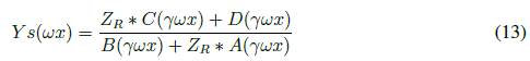 Las cargas ZR se modelan como la admitancia reflejada ecuación (13) que ve el backbone, en su expresión aparecen las variables hiperbólicas complejas A, B, C y D calculadas en la matriz (10).