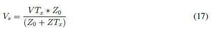 La tensión Vs se refleja por divisor de tensión en el nodo E, como muestra la ecuación (17).