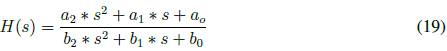 La función de transferencia se obtiene del determinante del sistema (15), como muestra la ecuación (16).