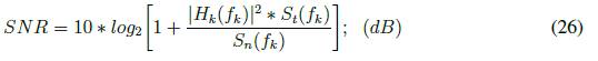 De la ecuación (25) se obtiene la ecuación (26), que representa la relacion señal a ruido en el canal que establece la carga. La Figura 17 muestra la relación señal a ruido con y sin el filtro estimado.