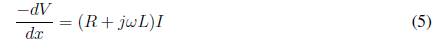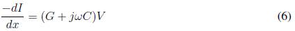 Una línea de transmisión en su forma general se presenta por las ecuaciones diferenciales parciales (5) y (6):
