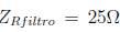 Los valores de impedancia por transferencia maíxima de potencia son: impedancia del filtro