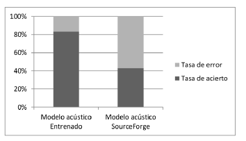 Por último, se compararon los resultados obtenidos con el sistema de RAH desarrollado con los resultados arrojados por el modelo de lenguaje y modelo acústico de la página SourceForge. Para esta comparación se utilizaron los mismos audios; estos resultados se presentan en la siguiente sección.