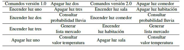 La principal diferencia existente entre las dos versiones de modelos del lenguaje estadísticos y modelos gramaticales que se desarrollaron en este trabajo es el cambio de los comandos con los que opera el sistema. La justificación de dicho cambio se orienta a mejorar el reconocimiento al momento de interpretar las órdenes dadas por el usuario.