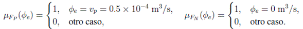 Para la variable de flujo de entrada se definen cuatro conceptos: flujo grande (FG ), flujo mediano (FM ), flujo pequeño (FP ) y flujo nulo (FN ) con las siguientes punciones de pertenencia: