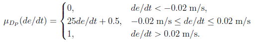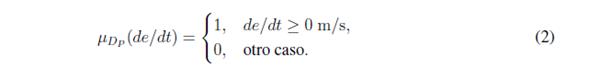 Para la variable de/dt se define un solo concepto: derivada positiva (DP) con la siguiente función de pertenencia: