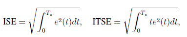 Evaluación de índices de desempeño Es de nuestro interés evaluar para el sistema controlado los índices de desempeño ITSE e ISE. Para este caso se usó la definición discreta de tales índices donde se remplaza la integral por una sumatoria y los valores de error son muestreados. Estos índices están definidos por: