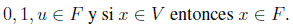 Definición 5 (Fórmulas bien formadas). Sea V un conjunto finito de variables. Dadas las constantes 0, u y 1, y los símbolos A, V y ', el conjunto de fórmulas bien formadas F está definido recursivamente como: