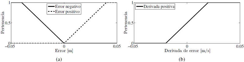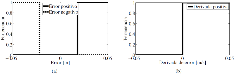 Aproximación a través de lógica booleana Para el error de nivel e se definen dos conceptos: error positivo (EP) y error negativo (EN) con las siguientes funciones de pertenencia (Figura 7):