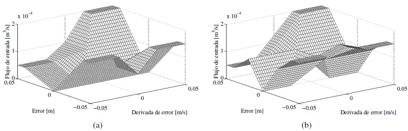 Notar que las unidades de son las mismas que las unidades de los actuadores virtuales vp y vg dado que las funciones de activación f y F son adimensionales. La Figura 9 muestra las superficies de control extremas para el flujo de entrada.