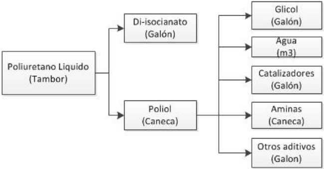 El método de dimensionamiento se aplicó a una empresa que abastece poliuretano líquido en sector de construcción con productos para acabados internos y sellantes. Los componentes de este producto se almacenan en diferentes presentaciones de acuerdo con las condiciones de abastecimiento (Figura 4). Es relevante mencionar que, por tema de confidencialidad de la organización, no se presentan datos específicos relacionados con el sistema de fabricación (mezcla y dosificación) de los componentes.