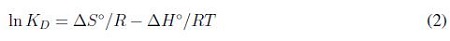 Donde KD es el coeficiente de distribución de adsorción lineal, definido como la razón entre la concentración en equilibrio del soluto adsorbido en la superficie y la concentración en equilibrio del soluto en la fase líquida. El valor de KD se obtiene graficando ln(qe/CE) contra CE. qe, es la cantidad de soluto adsorbido en la superficie del adsorbente en condición de equilibrio y CE un parámetro de concentración en equilibrio del soluto en solución. El cambio de la entropía estándar se obtiene de la siguiente ecuación [5]: