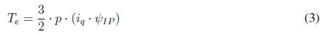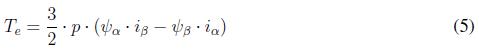 El control DTC se realiza en el sistema de referencia bifásico (α, β), el PMSM se encuentra en el sistema de referencia síncrono (d; q), por lo que es necesario aplicar las trasformaciones de Clarke y Park obteniéndose que el par electromagnético queda expresado por la ecuación (5).