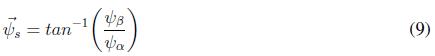 La magnitud y ángulo del vector de flujo del estator quedan expresados por la ecuación (8) y (9).