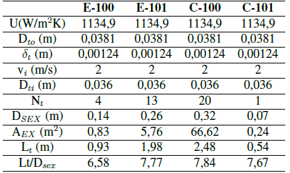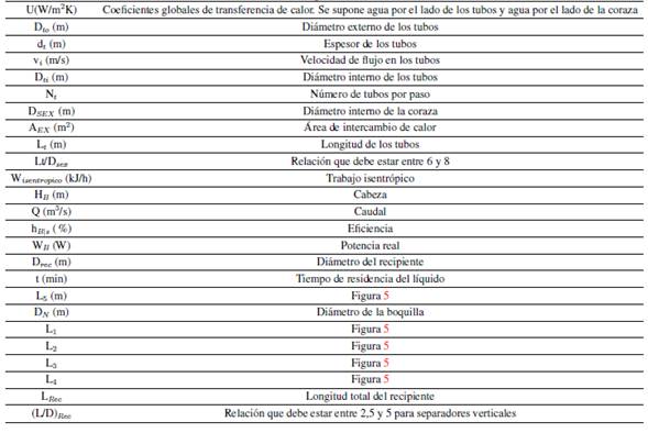 En la Tabla VI, la Tabla VII y la Tabla VIII se muestran los resultados del dimensionamiento de las unidades B- 100, E-100, E-101, V-101, C-100, C-101 y B-101 empleando criterios descritos en la bibliografía[77].