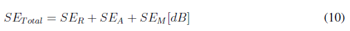 En este sentido, es posible descomponer la SE en tres tipos de pérdidas de energía (reflexión, absorción y múltiples reflexiones), las cuales habitualmente están presentes en una condición de frontera dada entre dos medios distintos. La definición de la SE es presentada en la ecuación (10) [37]-[42].