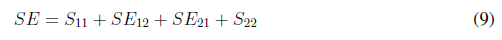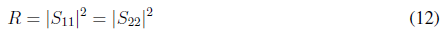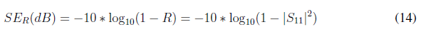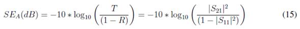 En el caso de la SEA, esta efectividad está relacionada con los parámetros de reflectancia y transmitancia a través de la ecuación (15) [37]-[39], [41], [42]. Sin embargo, si se remplazan los parámetros definidos en las ecuaciones (11) y (12), se obtiene una nueva expresión en función de los parámetros de dispersión obtenidos en la simulación.