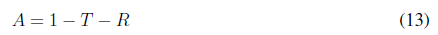 Con base en estas relaciones, el parámetro de absorción se obtiene a partir de la trasmitancia y reflectancia usando la ecuación (13) [37], [38], [42].