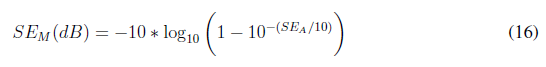 Finalmente, la efectividad de apantallamiento por múltiples reflexiones (SEM) se obtiene a partir de SEA, tal y como se muestra en la ecuación (16) [40].