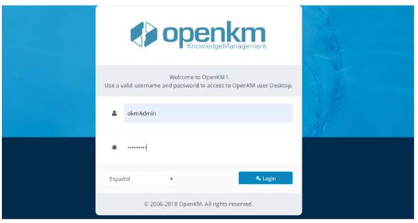 Se definió el modelo y se implementó en el portal de RITA UD (Red de Investigaciones de Tecnología Avanzada de la Universidad Distrital) la herramienta en la cual se soporta la base de conocimiento, ello de acuerdo con las investigaciones descritas anteriormente y seleccionando la más idónea para el proyecto. Esta solución es OpenKM en su versión libre (Figura 11).