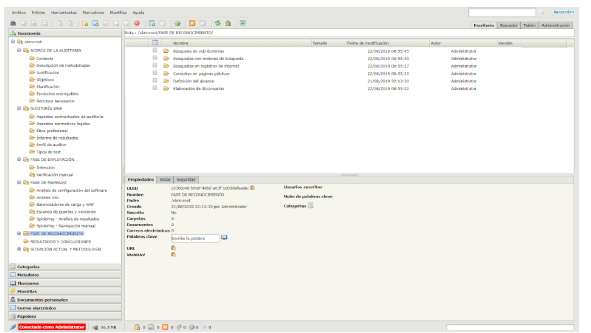 En esta sección se desarrollarán dos tareas principales, las cuales son detección y verificación. Cada una de estas tareas estará compuesta por hallazgos concretos que se logren encontrar en esta auditoría. Cada una de las demás auditorías será distinta, sobre todo en esta fase, ya que los hallazgos serán distintos cada vez, así que las pruebas que habrá que realizar cambiarán. También cambiarán en función de otros factores como la aplicación a auditar, o las tecnologías que use el prototipo. Para este caso específicamente son JSF, JPA, EJB, Primefaces, Glassfish, entre otras[7].