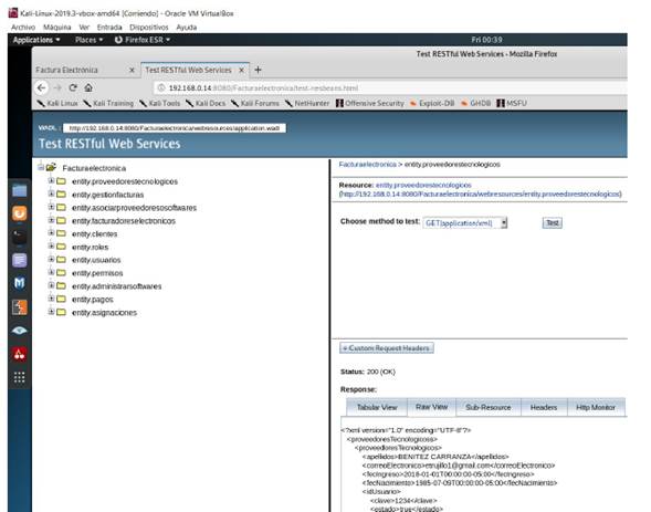 Se virtualizó Kali Linux para ejecutar la propuesta de auditoría sobre el Web Service de la aplicación Factura Electrónica Web (Figura 9).