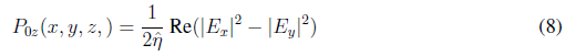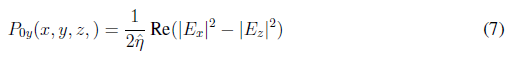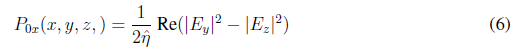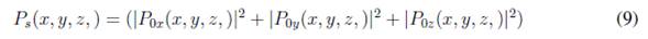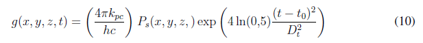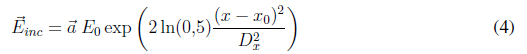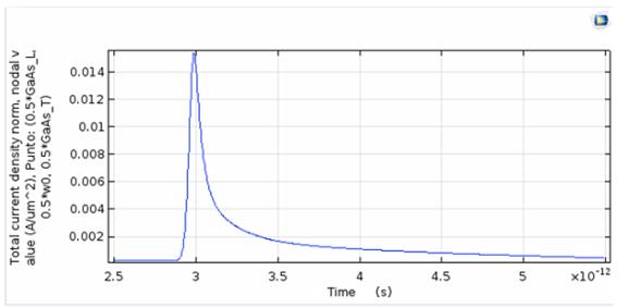 Now, by using the equation of the electromagnetic wave in terms of frequency (3) and the incident field (4), the resulting field is obtained by means of (5), thus simulating the optical excitation of the femtosecond pulse and showing the component peaks of the electric field in both spatial and temporal terms. Once this is done, the vector components of the power density and its total flux can be calculated (9), arriving at the generation of the carrier with equation (10) and obtaining the recombination response through (13).