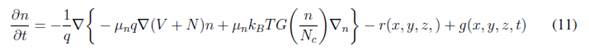 The steady-state solution provides the initial distribution of carriers and currents into the electrodes. The heterogeneous carrier mobilities in the semiconductor can also be found using this equation.