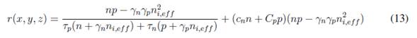 Finally, from the proposed system of equations, the recombination response is obtained. The electrical response is only considered for the Si-GaAs layer: