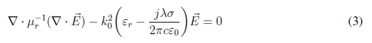 Electromagnetic waves are modeled in the frequency domain, when the effective wavelength is comparable with the sizes of the resonant and radiating structures, in this case, the antenna. The following expression raises the equation of the electromagnetic wave in terms of frequency.